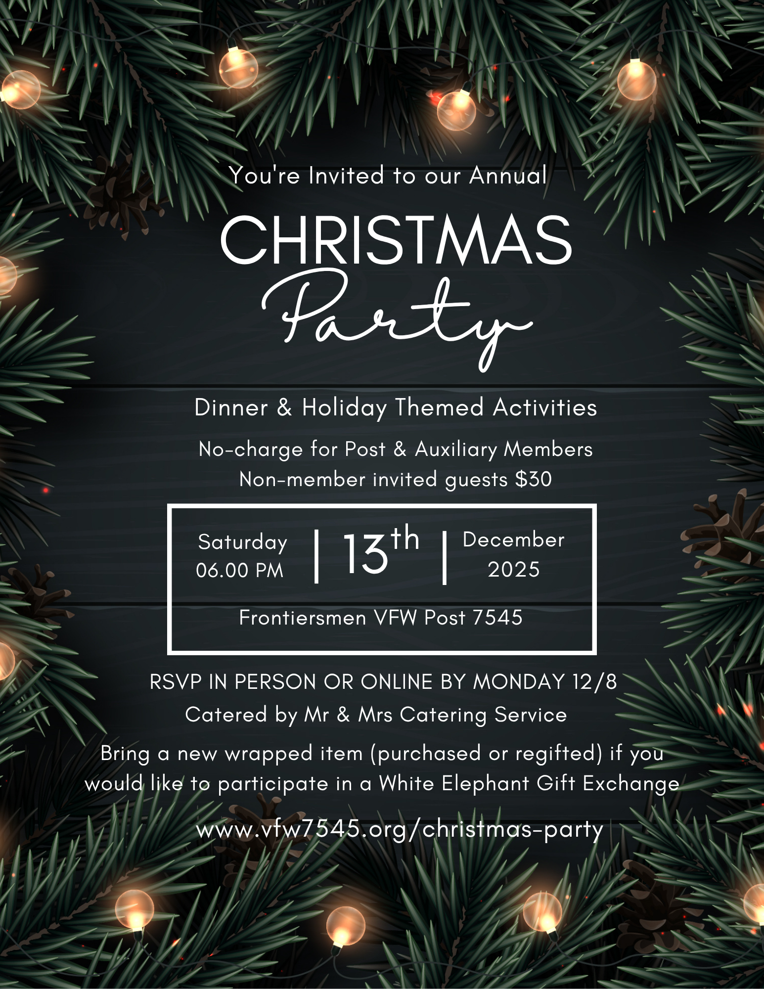 - Guests of Post Members and Auxiliary may attend for $30/person